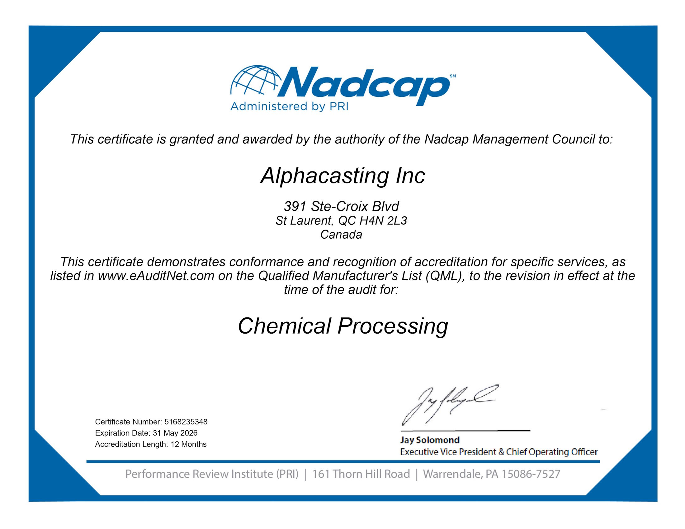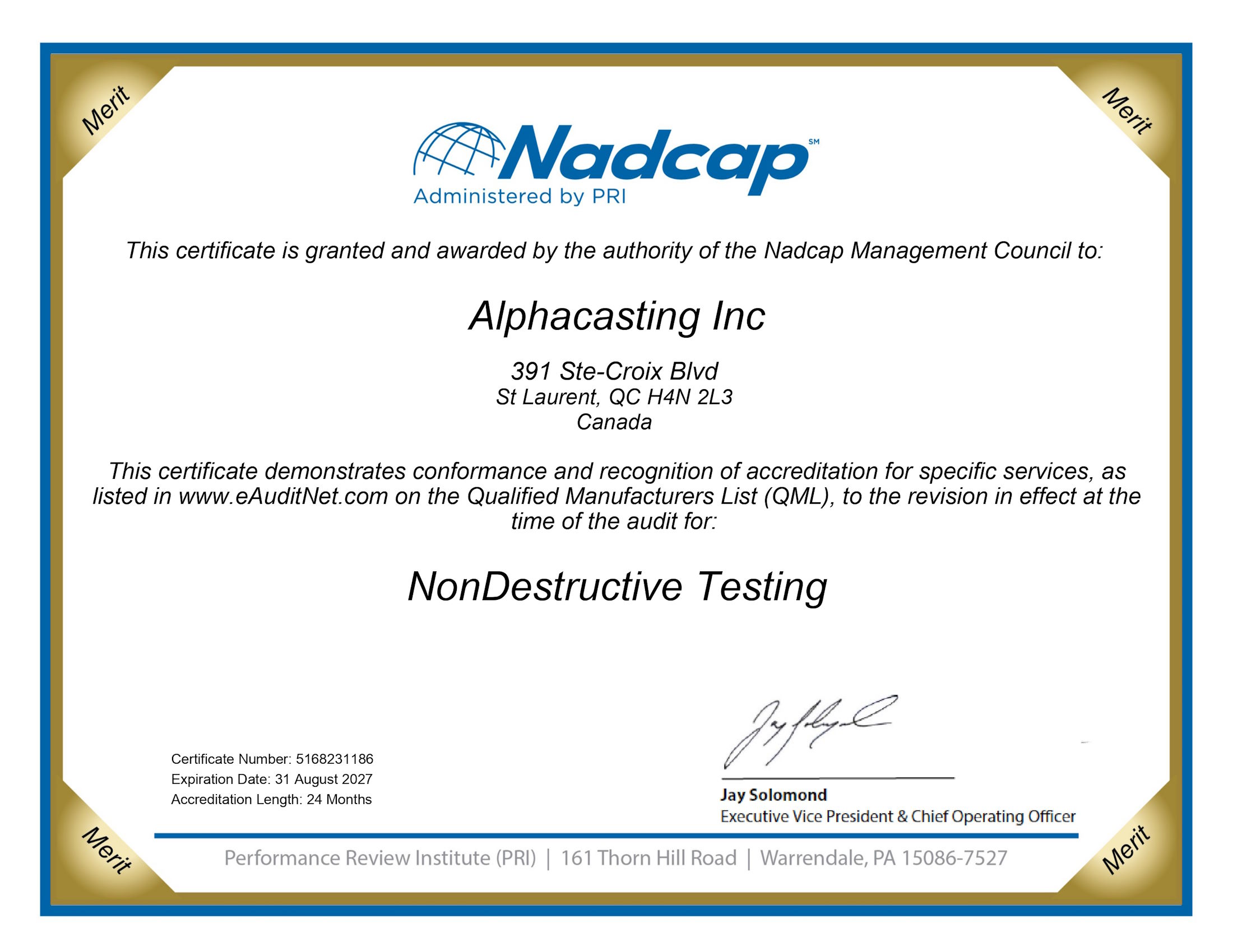Alphacasting has the required certifications for your projects!