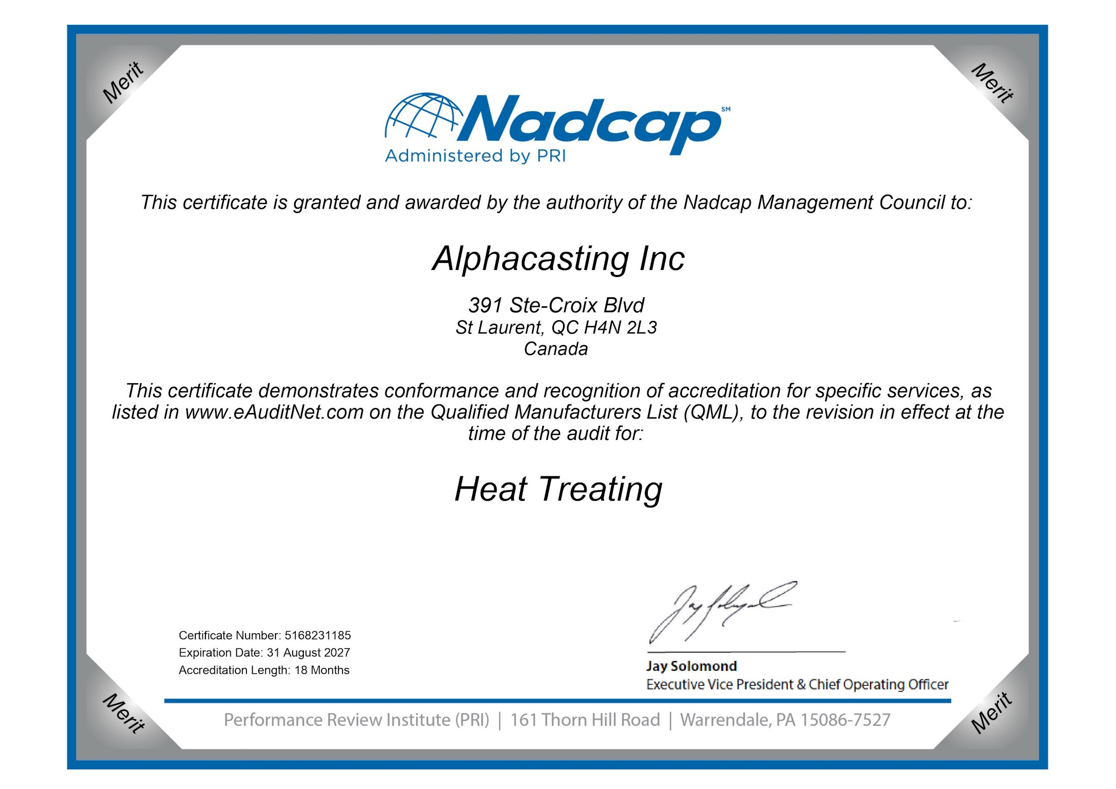 Alphacasting dispose des certifications requises pour vos projets.
